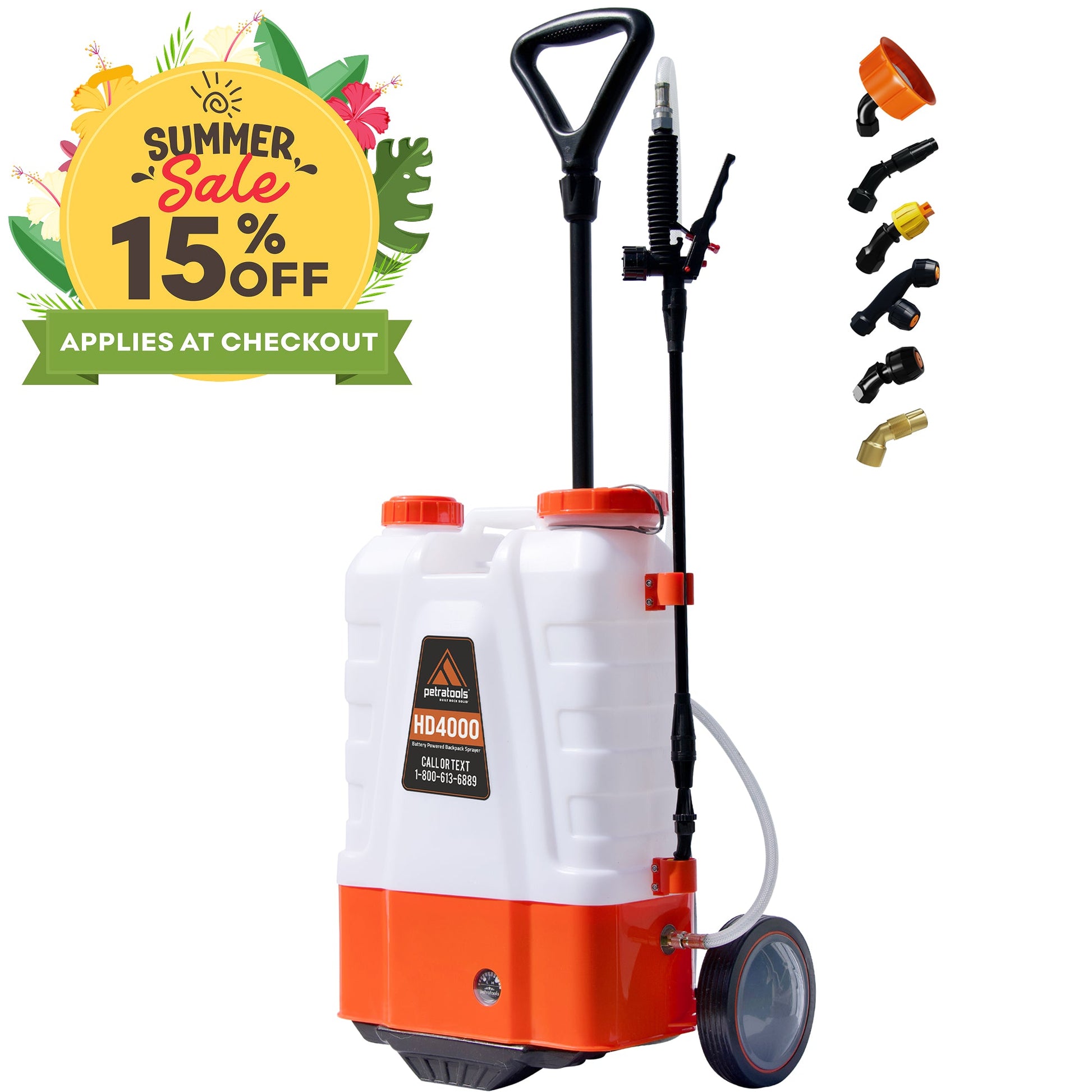 This do-it-all battery-operated backpack sprayer is ideal for any growing, plant care, or lawn care need. From small gardens to large commercial applications, greenhouse operations, and superior home lawn and garden care, this is the ideal sprayer for any job. The PetraTools’ HD4000 Battery-Operated Backpack Sprayer is build rock solid and will serve you through many years of reliable use.